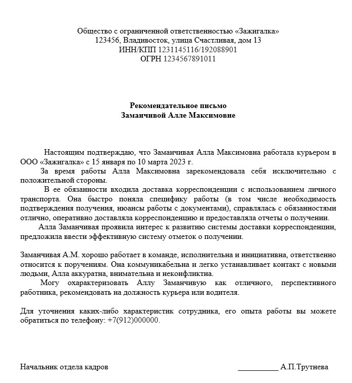Но если письмо составил рядовой коллега, то его должен подписать кто-то из начальства. Так оно будет более объективным и правдивым.